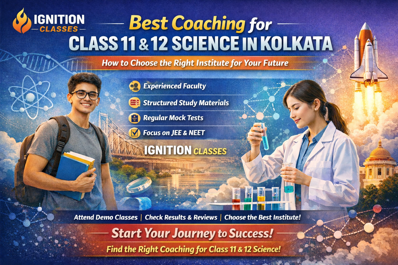 Choosing the right coaching institute is very important for students who want to succeed in Class 11 and 12 Science. Subjects like Physics, Chemistry, Mathematics, and Biology require strong concepts and regular practice. Many parents and students in Kolkata search for the best coaching institute that can provide proper guidance and support. In this article, we will discuss how to select the best coaching institute for Science students. 1. Experienced Teachers One of the most important factors is the experience of teachers. Good teachers can explain difficult concepts in a simple way and help students build strong fundamentals. Students should choose institutes where teachers focus on concept-based learning rather than only completing the syllabus. 2. Regular Tests and Mock Exams Regular tests help students understand their preparation level. Mock exams also help improve time management and confidence before the final board exam. A good coaching institute should provide: Weekly tests Mock board exams Performance analysis 3. Study Materials and Notes High-quality study materials are essential for effective learning. Coaching institutes should provide: Topic-wise notes Practice questions Previous year exam papers This helps students revise topics easily before exams. 4. Small Batch Size and Personal Attention Students learn better when teachers can give individual attention. Smaller batches allow students to ask doubts freely and understand concepts more clearly. 5. Doubt Clearing Sessions Science subjects often create doubts for students. Good coaching institutes provide regular doubt-clearing sessions so students never fall behind. Why Students Choose Ignition Classes At Ignition Classes, we provide quality coaching for students of Class 11 and 12 with a focus on concept clarity and exam preparation. Our features include: ✔ Experienced teachers ✔ Regular mock tests ✔ Study materials and notes ✔ Personal attention to every student ✔ Doubt clearing sessions Our institute located near Ripon Street has been guiding students to achieve better results in board exams. Admission Open Admissions are now open for Class 11 & 12 Science coaching. Subjects available: Physics Chemistry Mathematics Biology 📞 Contact: 8296597737 Join today and start your journey towards academic success.