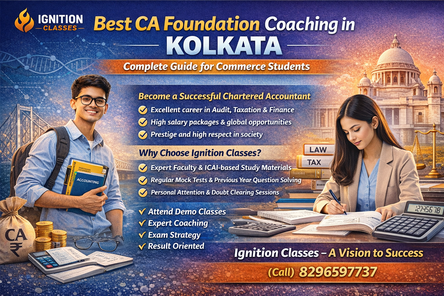 If you want to become a Chartered Accountant, the first step is clearing the CA Foundation examination conducted by the Institute of Chartered Accountants of India (ICAI). CA is one of the most prestigious professional courses in India, offering excellent career opportunities in accounting, taxation, auditing, finance, and consulting. For students in Class 12 or after Class 12, preparing for CA Foundation with proper guidance can significantly increase the chances of success. What is CA Foundation? CA Foundation is the entry-level exam for the Chartered Accountancy course. After passing Class 12, students can register with ICAI and appear for the exam. This level builds a strong base in accounting, law, economics, and mathematics which are essential for advanced CA studies. Subjects in CA Foundation Course The CA Foundation exam consists of four papers: 1. Principles and Practice of Accounting This subject teaches fundamental accounting concepts like journal entries, ledger posting, trial balance, and financial statements. 2. Business Laws Students study business regulations including the Indian Contract Act, 1872, which forms the foundation of commercial law in India. 3. Business Mathematics, Logical Reasoning & Statistics This paper improves analytical thinking and problem-solving ability required in financial decision making. 4. Business Economics & Commercial Knowledge Students understand how markets work and how businesses operate in the real economy. Why Choose CA as a Career? Choosing Chartered Accountancy offers several advantages: ✔ High professional respect ✔ Excellent salary packages ✔ Opportunities in multinational companies ✔ Ability to start your own practice ✔ Global career opportunities Qualified CAs work in fields like audit, taxation, investment banking, corporate finance, and consulting. Importance of Coaching for CA Foundation The CA Foundation syllabus is vast and concept-based. A good coaching institute helps students: 📚 Understand complex concepts easily 📊 Practice exam-oriented questions 📝 Attempt regular mock tests 👨🏫 Get guidance from experienced teachers 📖 Stay disciplined with structured study plans With expert coaching, students can prepare more efficiently and improve their exam performance. CA Foundation Coaching in Kolkata – Ignition Classes If you are looking for CA Foundation Coaching in Kolkata, Ignition Classes – A Vision to Success provides structured learning and expert guidance to help students clear the exam confidently. Why Students Choose Ignition Classes ⭐ Experienced faculty with strong subject expertise ⭐ ICAI-based study materials and notes ⭐ Regular mock tests and practice sessions ⭐ Previous year question paper solving ⭐ Personal attention and doubt clearing sessions Our focus is to build conceptual clarity, exam strategy, and confidence in students preparing for CA Foundation. Tips to Crack CA Foundation Exam Here are some effective preparation tips: ✔ Understand concepts instead of memorizing ✔ Practice accounting problems daily ✔ Revise law sections regularly ✔ Solve previous year ICAI question papers ✔ Attempt mock tests to improve speed and accuracy Consistency and discipline are the key to success in CA Foundation. Start Your CA Journey Today Becoming a Chartered Accountant is a journey of dedication and hard work. With the right guidance and preparation strategy, students can easily clear CA Foundation and move forward toward their dream career. 🎯 Begin your CA journey with the right mentorship. 📍 Ignition Classes – A Vision to Success 📞 Contact: 8296597737